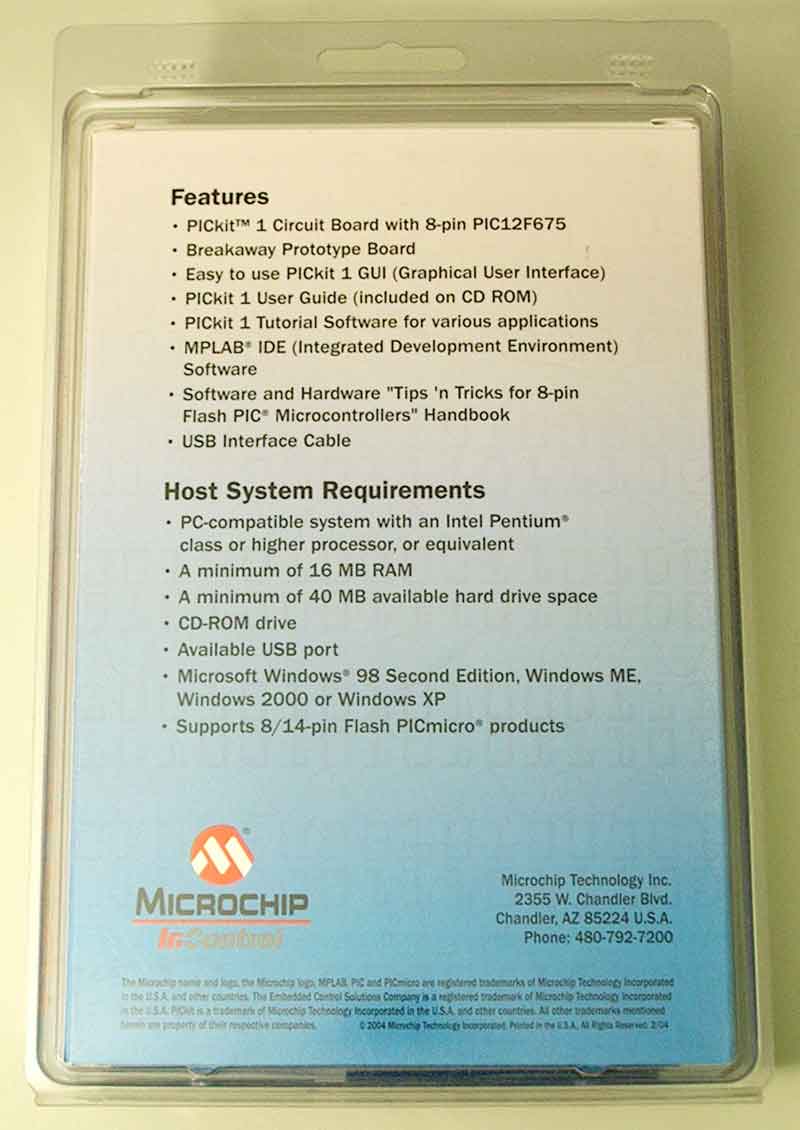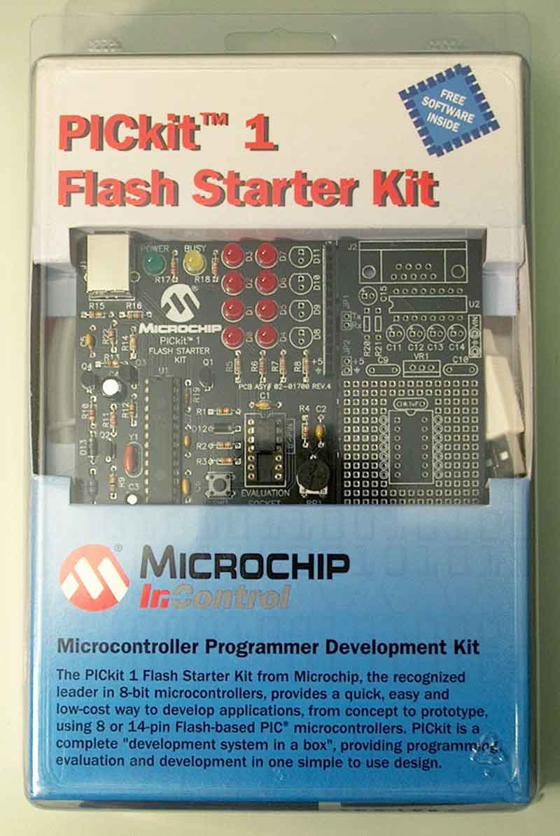 The PICkit 1 FLASH Starter Kit is all you need to get started programming 8-bit FLASH microcontrollers. Includes PICkit 1 circuit board, one 8-pin PIC12F675 (pictured on the circuit board), one 14-pin PIC16F684 (pictured in the separate container), MPLAB integrated development environment and other software compatible with Windows versions from 98SE to XP, and a USB cable. Everything you need to get started right away!